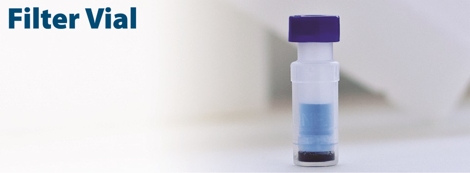 SINGLE StEPフィルターバイアルは、バイアルにサンプルを入れてワンプッシュするだけでサンプル濾過が完了します。