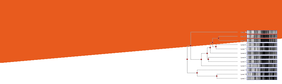 - 環境中の微生物叢の解析、醸造・培養液中の微生物叢の解析、農作物の品種分析、集団遺伝学などで多用されるDGGEゲル、PFGEゲル、RFLPゲルなどから系統樹解析を行うことができます。