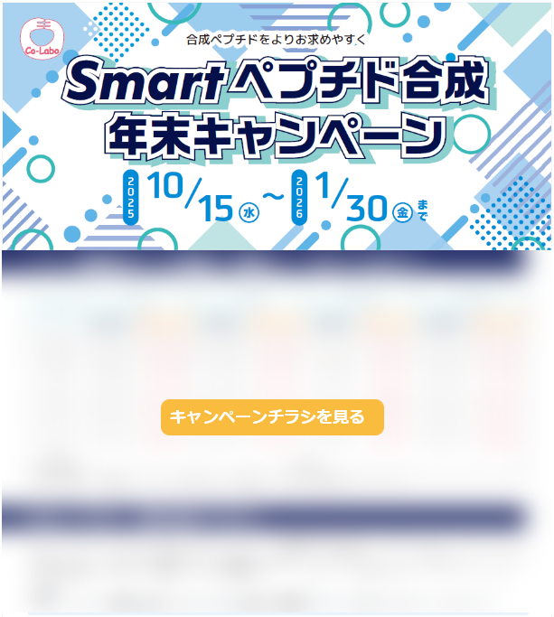 目的ペプチドが確認できなかった場合は料金をいただかない「成功報酬制」や、複雑な追加費用のない明瞭な価格設定など、研究者にとって使いやすいサービス体系となっています。