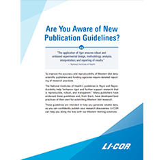 また近年、トップジャーナルを中心に定量ウェスタンブロットデータの論文投稿ガイドラインがアップデートされ、従来よりも厳正な実験を行うことが求められてきています。蛍光ウェスタンブロット法はその最新の論文投稿規定で求められる内容を満たしやすい実験手法です。