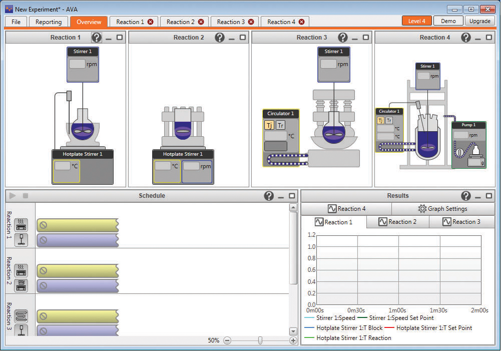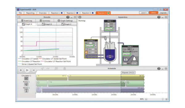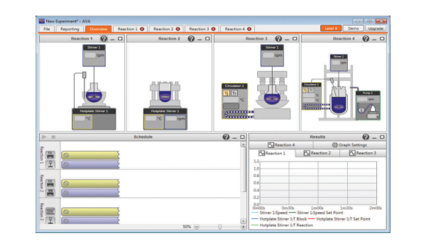 AVA シリーズは、Mya 4を除くRadleys社のすべての有機合成装置を制御でき、1つのソフトで最大4基のリアクターを同時に運転可能です。